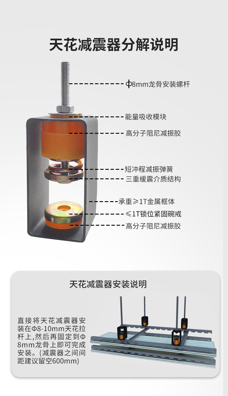天花減振器145*50*50mm 重0.38kg一個 單個負荷25-50kg