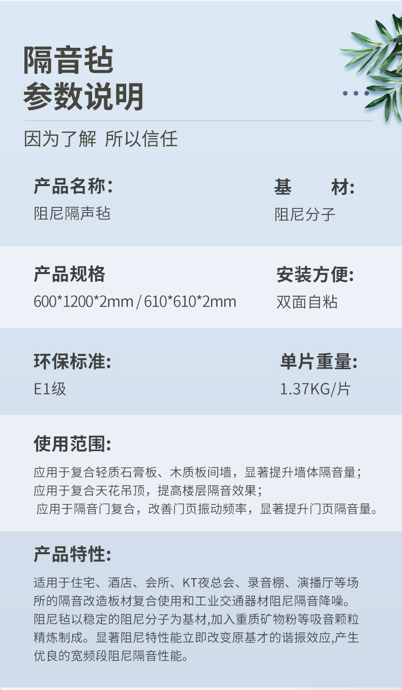 應用于隔音門復合,改善門頁振動頻率,顯著提升門頁隔音量