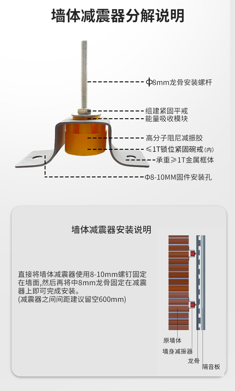 墻體減振器115*50*80mm 重0.28kg一個 單個負荷20-40kg