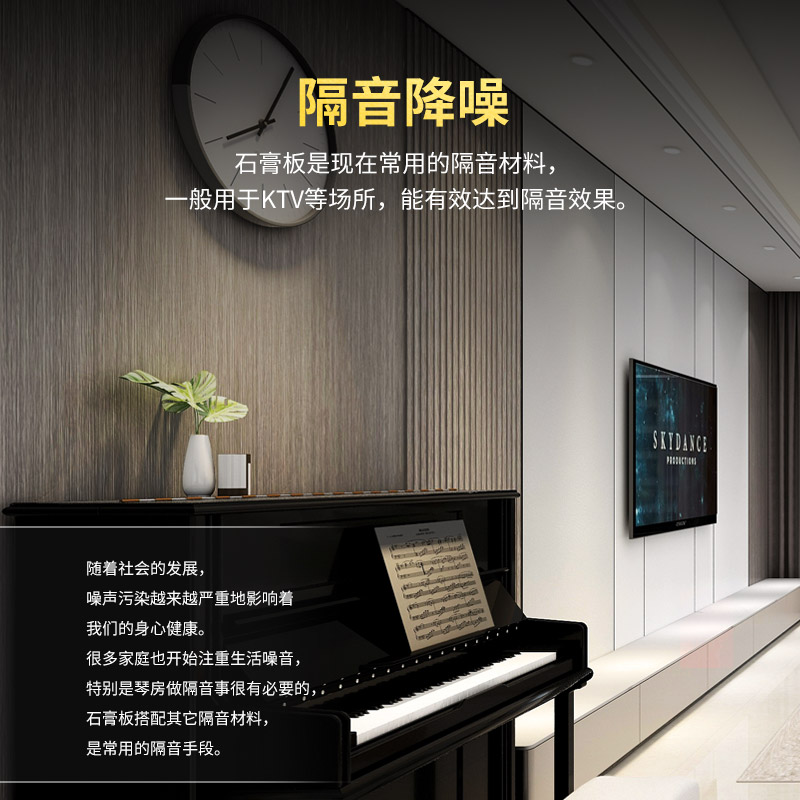 產(chǎn)品性能:質(zhì)輕高強(qiáng)/平整美觀/吸音隔聲/花色豐富/環(huán)保無(wú)醛/施工快捷